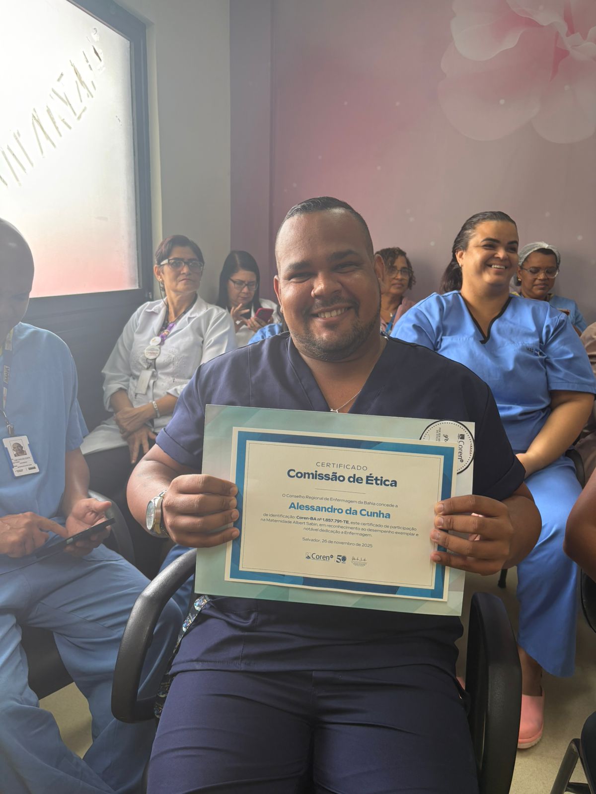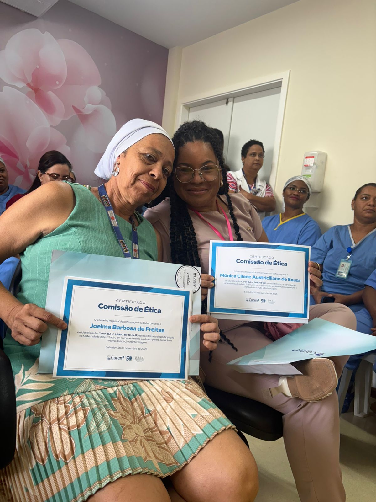 Nesta quarta-feira (26), o Conselho Regional de Enfermagem da Bahia (Coren-BA) oficializou a posse da Comissão de Ética de Enfermagem (CEE) da Maternidade Albert Sabin, fortalecendo o compromisso institucional com a ética, a qualificação do cuidado e a valorização dos profissionais de enfermagem.