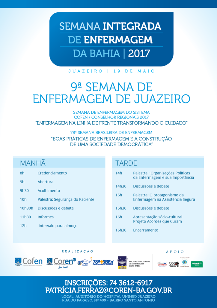 Participe da Semana Integrada de Enfermagem da Bahia, em Juazeiro