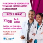 O Conselho Regional de Enfermagem da Bahia (Coren-BA) tem a honra de anunciar o “Encontro Regional de Responsáveis Técnicos e Coordenadores de Enfermagem de Irecê e Região – A importância da responsabilidade técnica e das suas lideranças”.