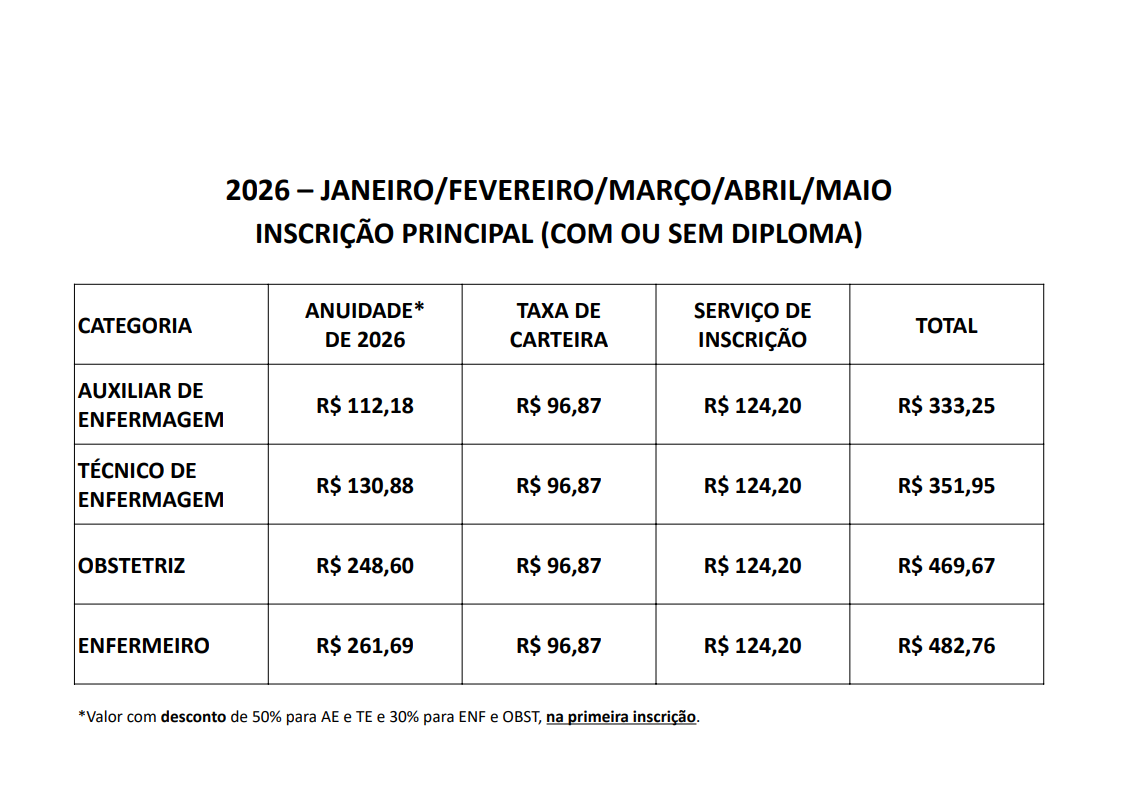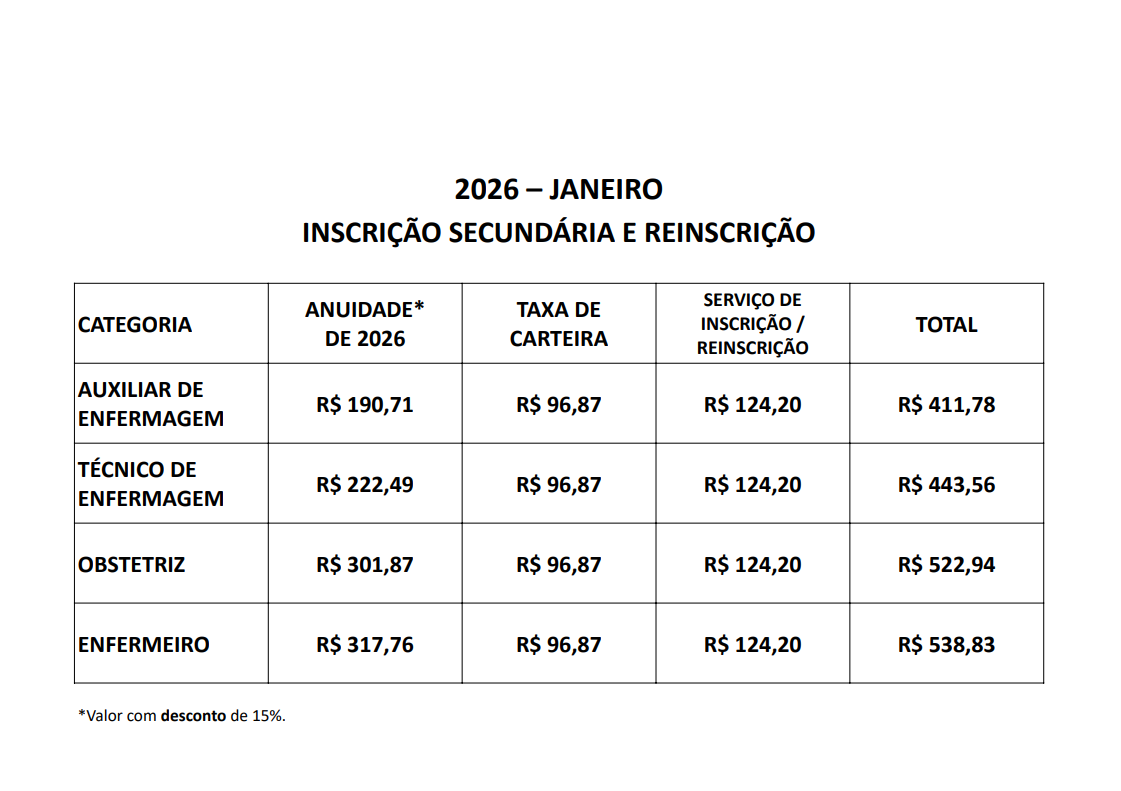 Além disso, o profissional de Enfermagem pode ter uma ou mais inscrições secundárias, mas é obrigatório pagar a anuidade tanto no Conselho Regional da inscrição principal quanto das secundárias, conforme a Resolução Cofen n.º 560/2017, Art. 47.