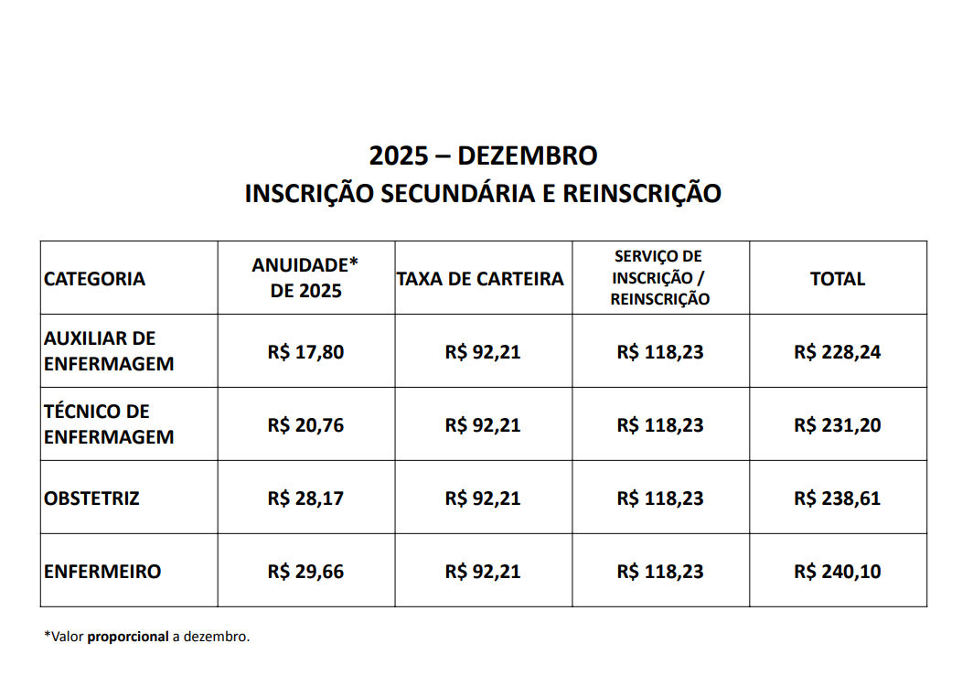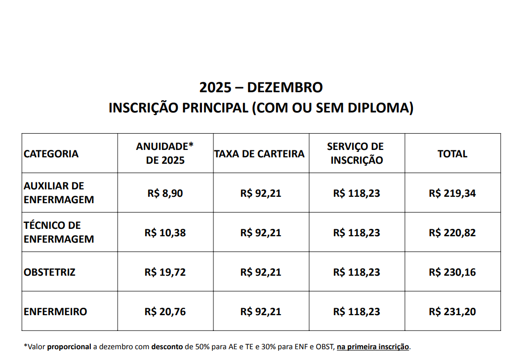 Se o profissional já tiver uma inscrição ativa no Coren-BA e solicitar uma nova categoria, ele pagará apenas a diferença entre a anuidade de maior valor e a de menor valor para 2025.